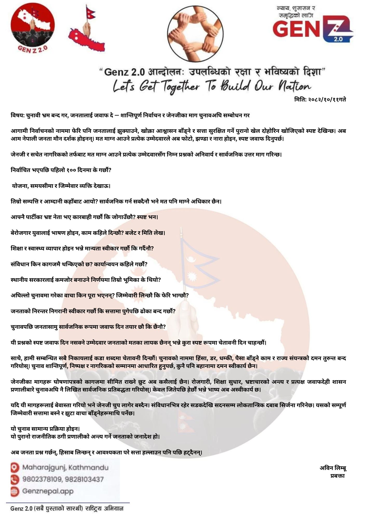 जेनजीको माग सम्बोधन गर्ने सहमती सर्तसहित संसद पुनःस्थापना वा निर्वाचन अपरिहार्य : अविन लिम्बु