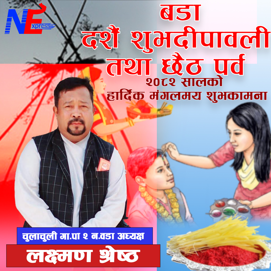 लक्ष्मण श्रेष्ठ – वडा नं. २ का दाजुभाइ दिदीबहिनीहरूलाई दशैं–तिहार र छैठ पर्वको हार्दिक शुभकामना!