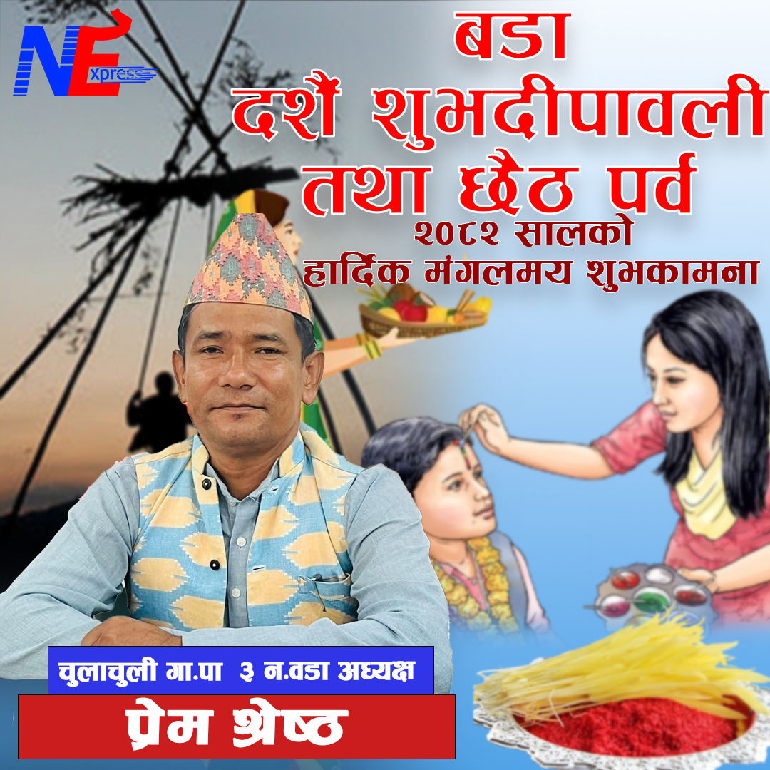 प्रेम श्रेष्ठ – वडा नं. ३ का दाजुभाइ दिदीबहिनीहरूलाई दशैं–तिहार र छैठ पर्वको मंगलमय शुभकामना!