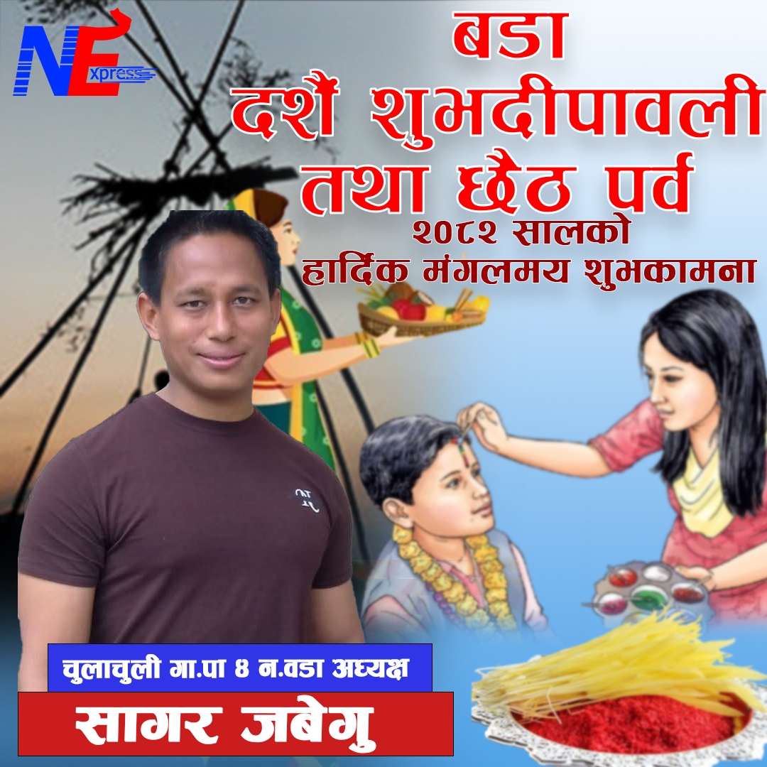 सागर जबेगु – वडा नं. ४ का सम्पूर्ण दाजुभाइ दिदीबहिनीहरूलाई दशैं–तिहार र छैठ पर्वको हार्दिक शुभकामना!