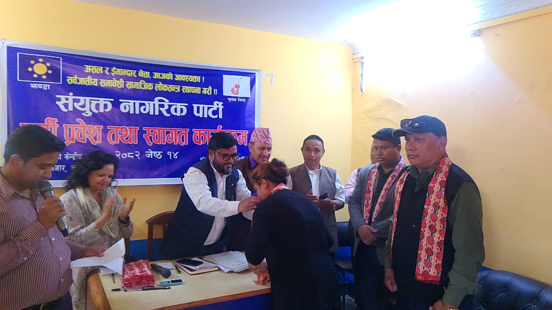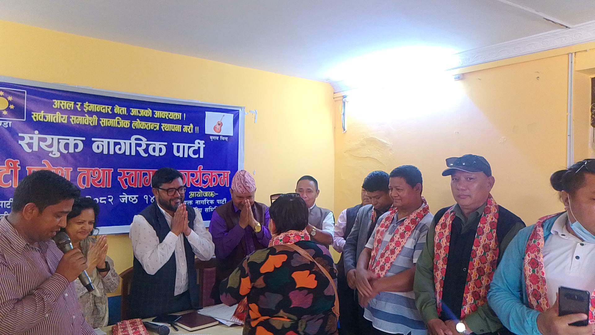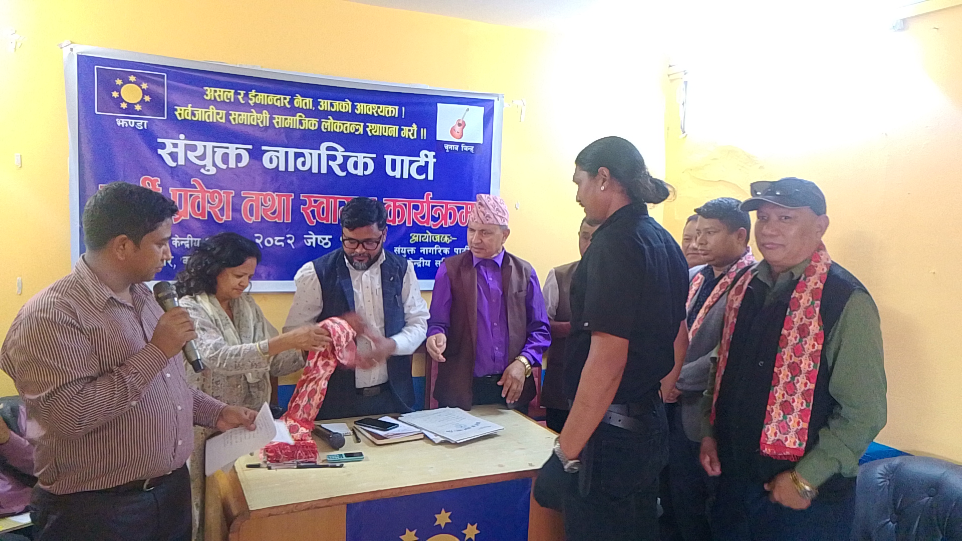 आज संयुक्त नागरिक पार्टीले केन्द्रीय कार्यालय विजुलीबजारमा आयोजना गरेकाे पार्टी प्रवेश तथा स्वागत कार्यक्रममा नाैवाग सहित काँग्रेस ललितपुरका युवा नेता अशाेक लामा,देशभक्त समाज पार्टीका केन्द्रीय सदस्य लिलराज गुरुङ्ग( राजु) एपी रिपब्लिकन पार्टीका युवा विभाग प्रमुख श्यामबहादुर राई, सचिवालय सदस्य सपना महर्जन, केन्द्रीय सदस्यहरु हरिकुमार घले,जीत बहादुर विक,ज्याेती अधिकारी,सन्त बहादुर भण्डारी,आइतरानी लिम्बू,विनिता अधिकारी,सन्त लकाजु त्यसैगरि अन्य विभिन्न दल परित्याग गरि पार्टी प्रवेश गर्नेहरुमा चित्रलाल विक,चेरुङ्ग तामाङ्ग,मिना राउत, रेबिका लकान्द्री,बिनिता दराई, स्वस्तिका थापा,परिस्ता मगर,साजन राई,ए.एच. के.राई,निरान राई,निरज राई, दिपेस राई,खिलराज राई,आमोस आग्री,जीवन लामा लगायत रहनु भएकाे छ ।